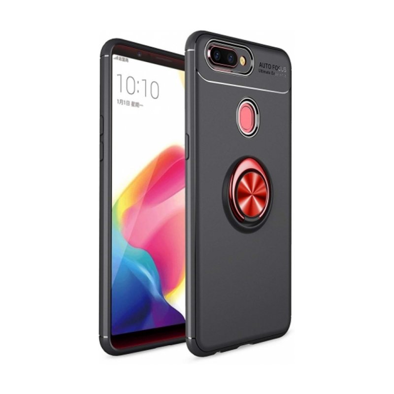 Oppo A12 Kılıf Renkli Silikon Yüzüklü Standlı Auto Focus Ravel Kapak - Kırmızı - Siyah