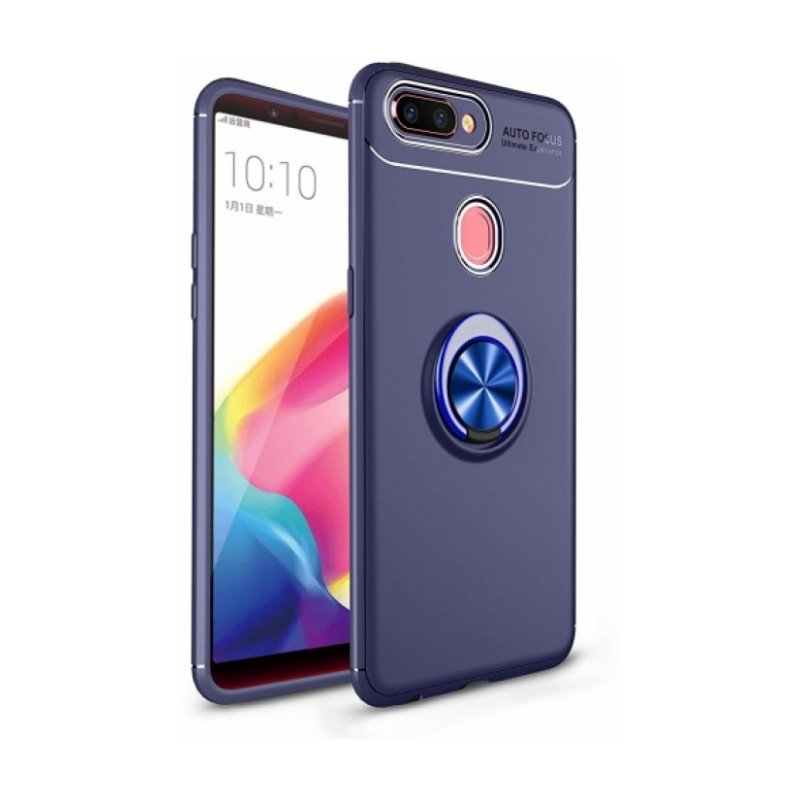 Oppo A12 Kılıf Renkli Silikon Yüzüklü Standlı Auto Focus Ravel Kapak - Mavi