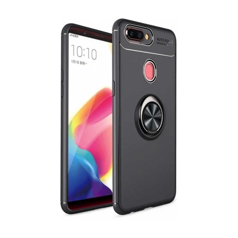 Oppo A12 Kılıf Renkli Silikon Yüzüklü Standlı Auto Focus Ravel Kapak - Siyah