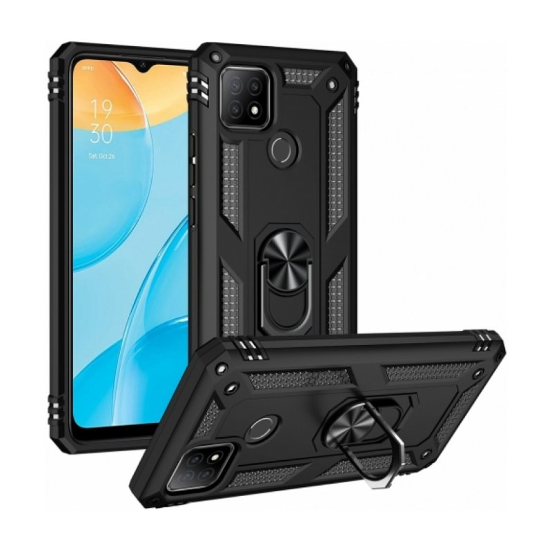 Oppo A15 Kılıf Silikon Zırhlı Standlı Yüzüklü Mıknatıslı Tank Kapak - Siyah