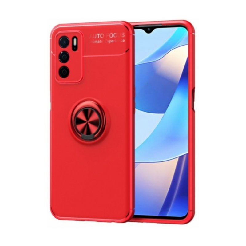 Oppo A16 Kılıf Renkli Silikon Yüzüklü Standlı Auto Focus Ravel Kapak - Kırmızı