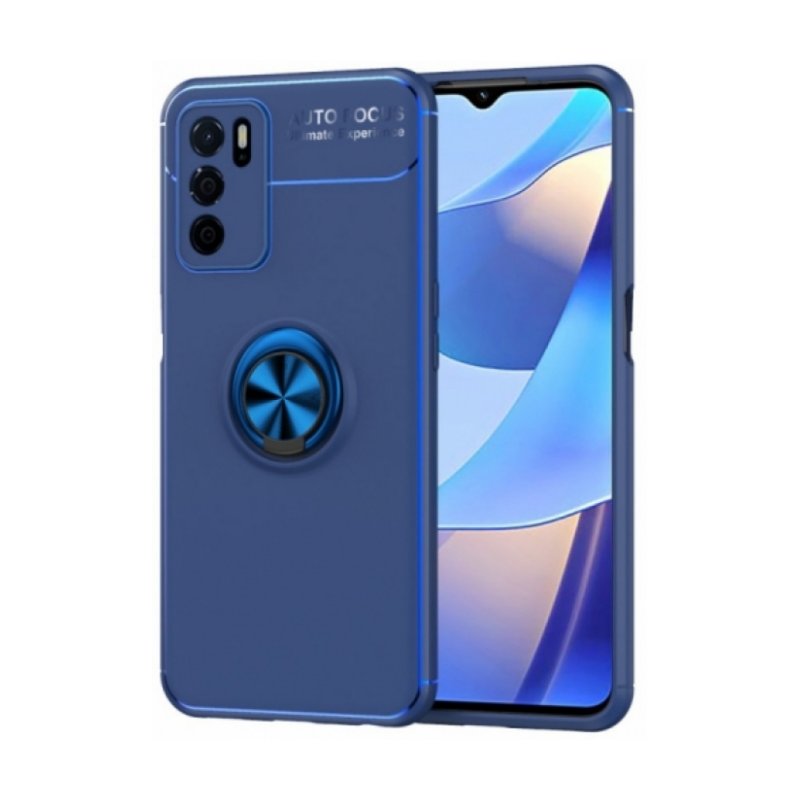 Oppo A16 Kılıf Renkli Silikon Yüzüklü Standlı Auto Focus Ravel Kapak - Mavi