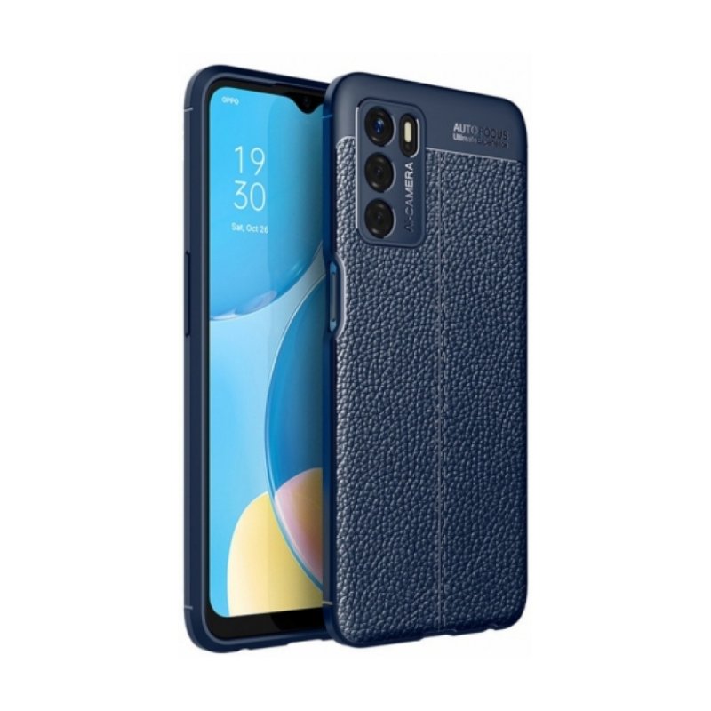 Oppo A16 Kılıf Deri Görünümlü Lüks Parmak İzi Bırakmaz Niss Silikon Kapak - Lacivert