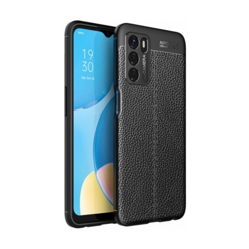 Oppo A16 Kılıf Deri Görünümlü Lüks Parmak İzi Bırakmaz Niss Silikon Kapak - Siyah
