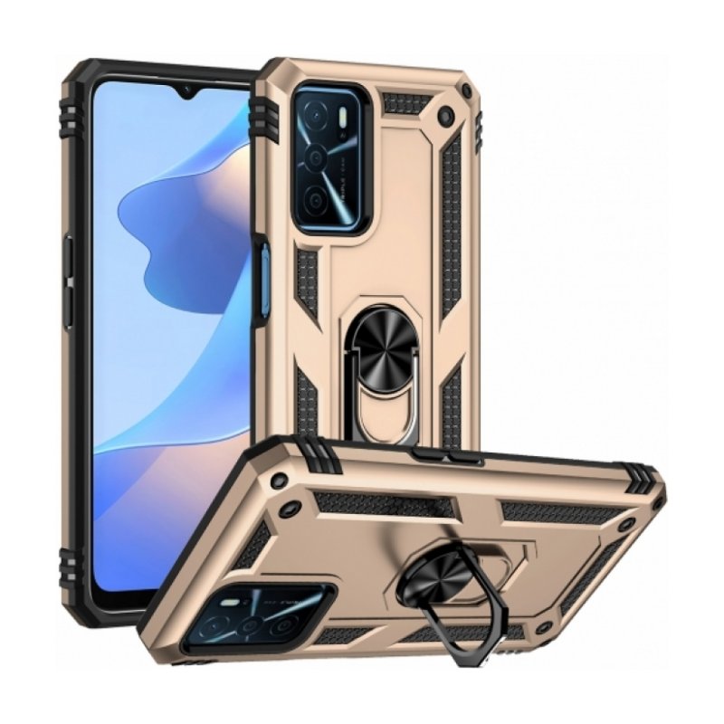 Oppo A16 Kılıf Silikon Zırhlı Standlı Yüzüklü Mıknatıslı Tank Kapak - Gold