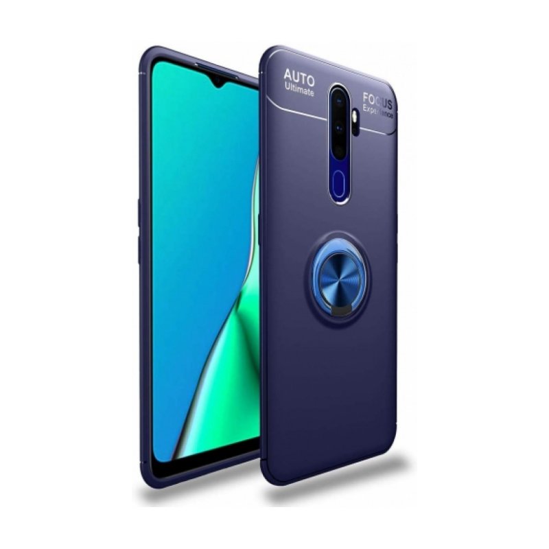 Oppo A5 2020 Kılıf Renkli Silikon Yüzüklü Standlı Auto Focus Ravel Kapak - Mavi