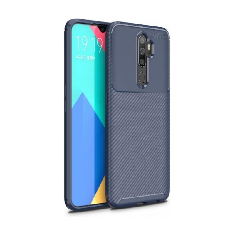 Oppo A5 2020 Kılıf Silikon Parmak İzi Bırakmayan Karbon Soft Negro Kapak - Lacivert