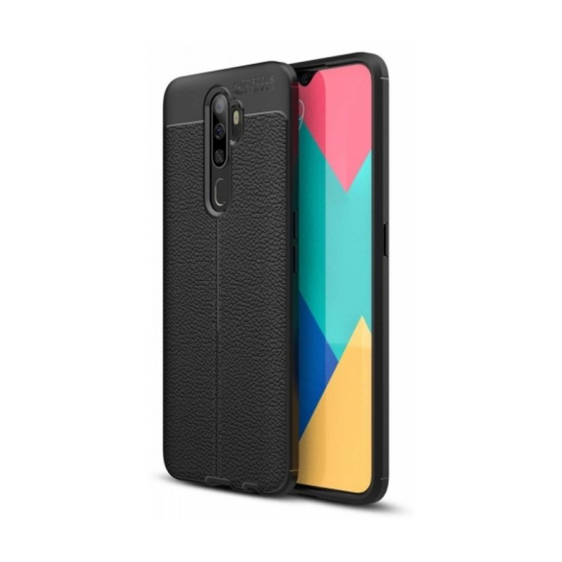 Oppo A5 2020 Kılıf Deri Görünümlü Lüks Parmak İzi Bırakmaz Niss Silikon Kapak - Siyah