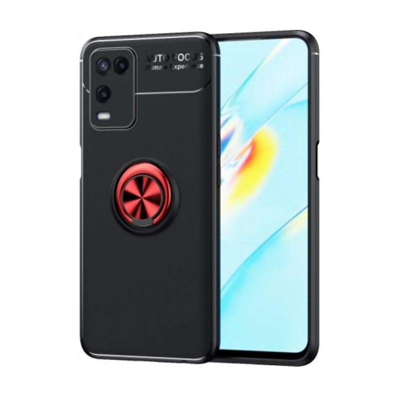 Oppo A54 Kılıf Renkli Silikon Yüzüklü Standlı Auto Focus Ravel Kapak - Kırmızı - Siyah