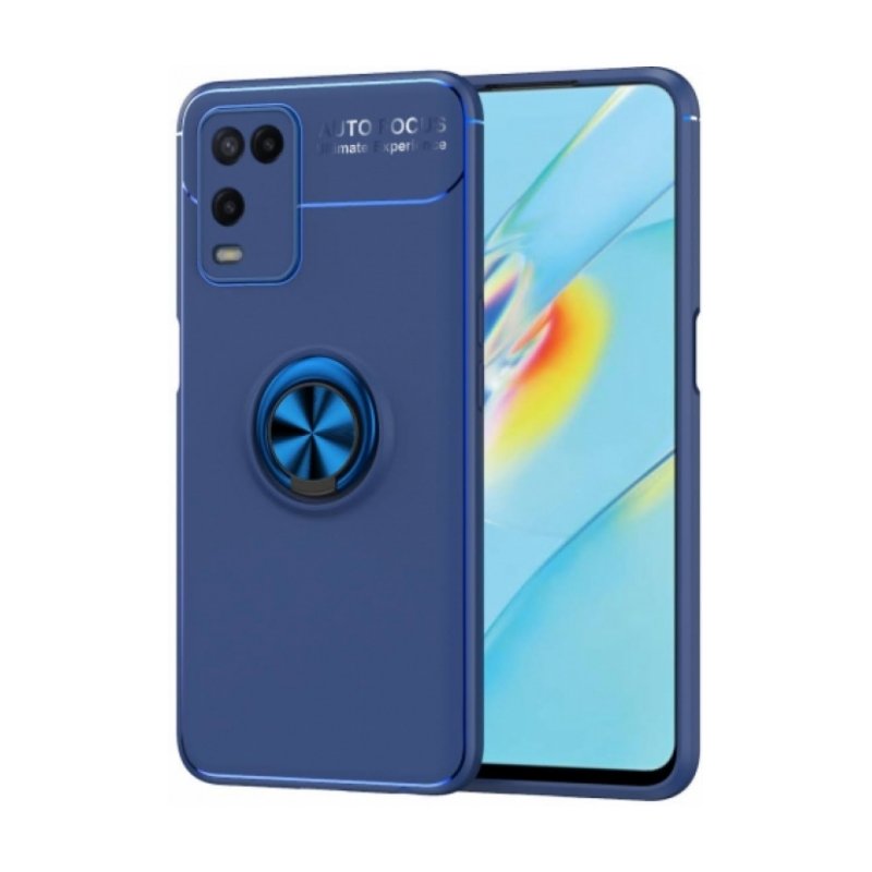 Oppo A54 Kılıf Renkli Silikon Yüzüklü Standlı Auto Focus Ravel Kapak - Mavi