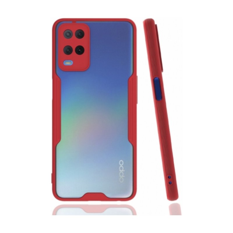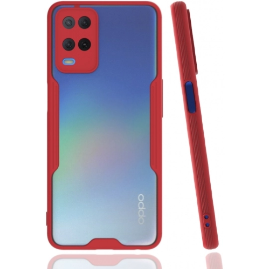 Oppo A54 Kılıf Renkli Silikon Kamera Lens Korumalı Şeffaf Parfe Kapak - Kırmızı