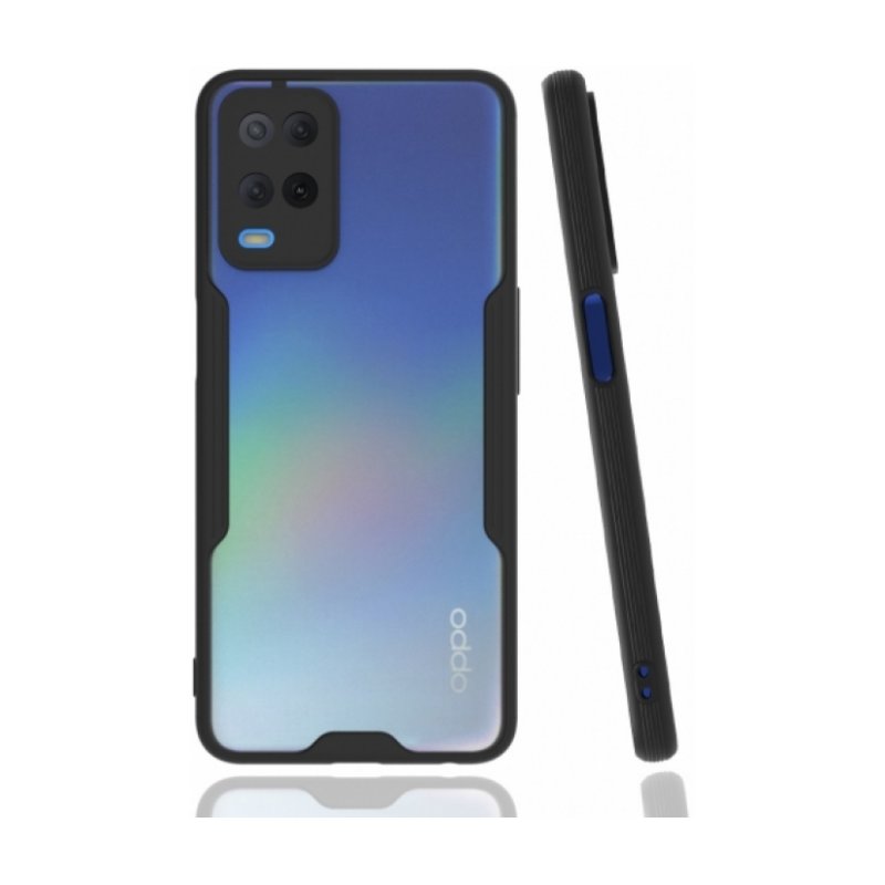 Oppo A54 Kılıf Renkli Silikon Kamera Lens Korumalı Şeffaf Parfe Kapak - Siyah
