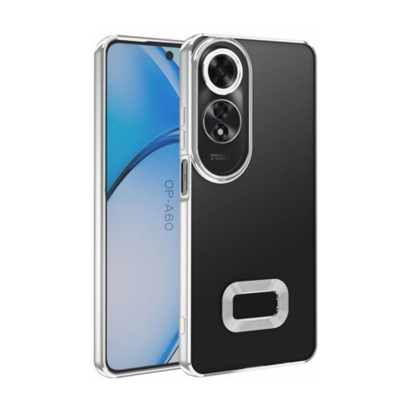 Oppo A60 Kılıf Kamera Lens Korumalı Şeffaf Renkli Logo Gösteren Parlak Kapak - Gümüş