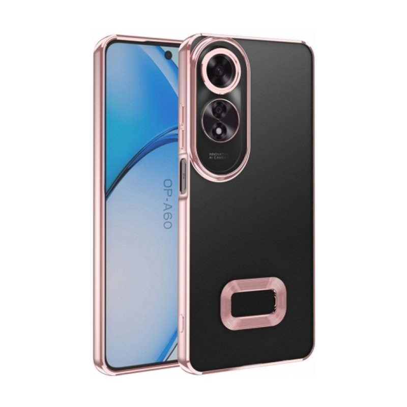 Oppo A60 Kılıf Kamera Lens Korumalı Şeffaf Renkli Logo Gösteren Parlak Kapak - Rose Gold
