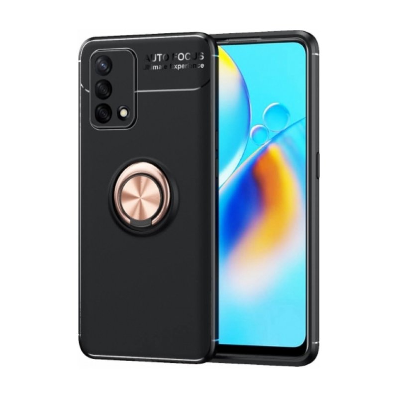 Oppo A74 Kılıf Renkli Silikon Yüzüklü Standlı Auto Focus Ravel Kapak - Rose Gold