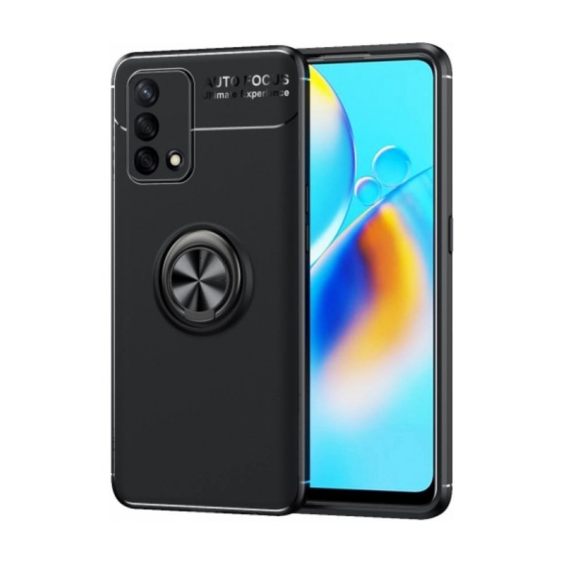 Oppo A74 Kılıf Renkli Silikon Yüzüklü Standlı Auto Focus Ravel Kapak - Siyah