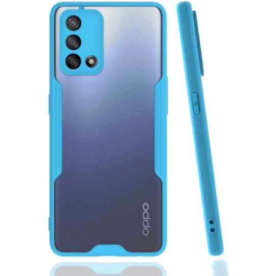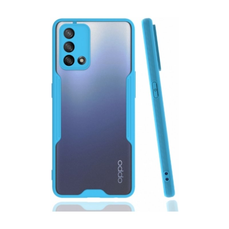 Oppo A74 Kılıf Renkli Silikon Kamera Lens Korumalı Şeffaf Parfe Kapak - Mavi