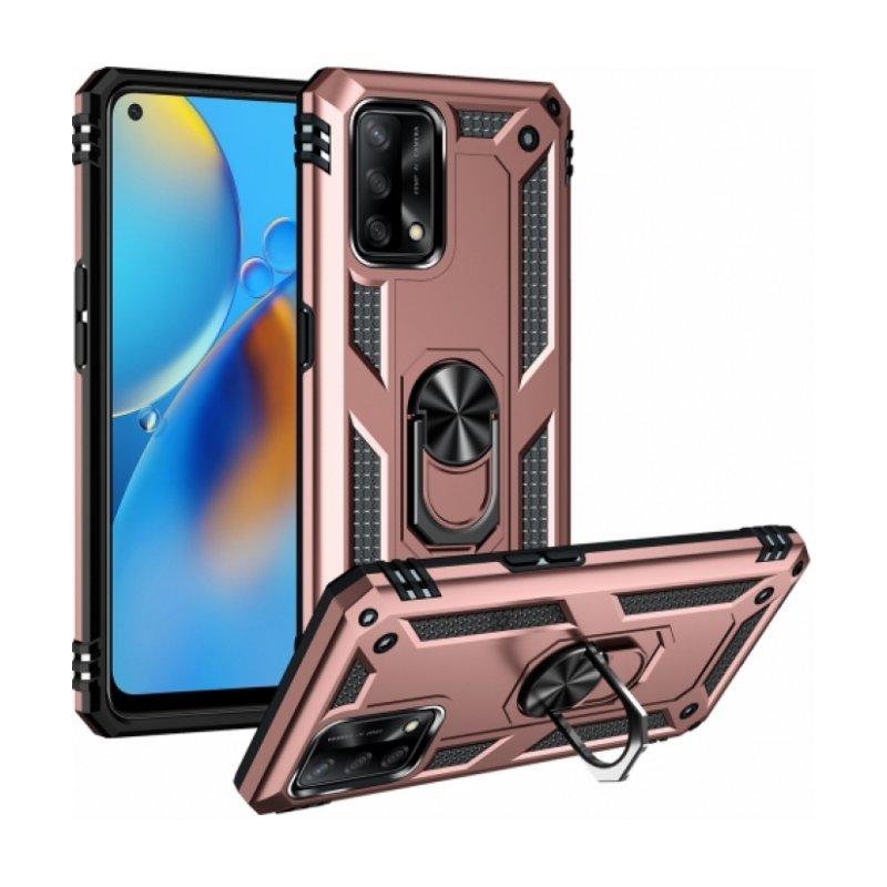 Oppo A74 Kılıf Silikon Zırhlı Standlı Yüzüklü Mıknatıslı Tank Kapak - Rose Gold