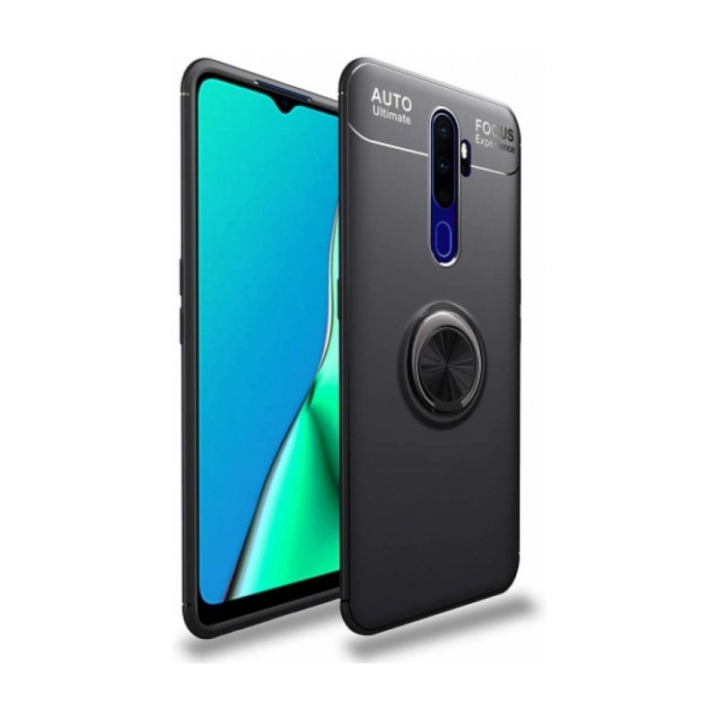 Oppo A9 2020 Kılıf Renkli Silikon Yüzüklü Standlı Auto Focus Ravel Kapak - Siyah