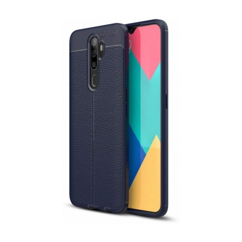 Oppo A9 2020 Kılıf Deri Görünümlü Lüks Parmak İzi Bırakmaz Niss Silikon Kapak - Lacivert