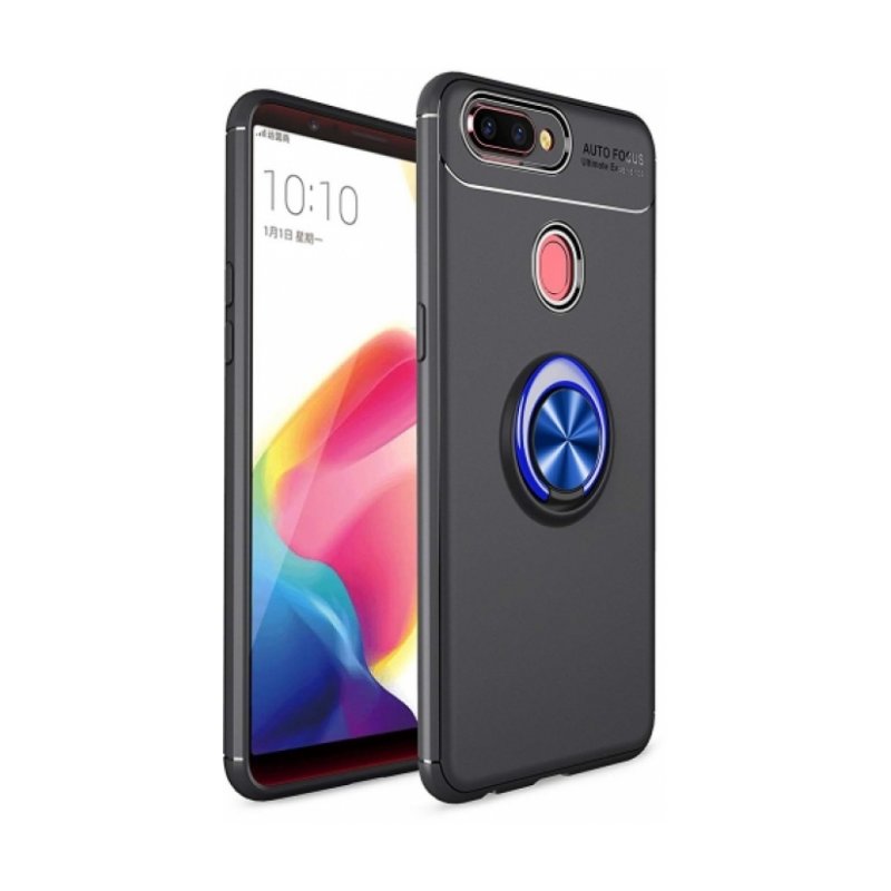 Oppo AX7 Kılıf Renkli Silikon Yüzüklü Standlı Auto Focus Ravel Kapak - Mavi - Siyah