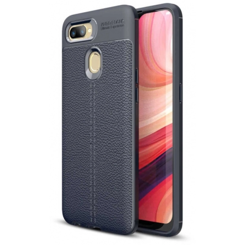 Oppo AX7 Kılıf Deri Görünümlü Lüks Parmak İzi Bırakmaz Niss Silikon Kapak - Lacivert