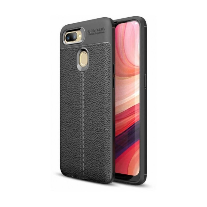 Oppo AX7 Kılıf Deri Görünümlü Lüks Parmak İzi Bırakmaz Niss Silikon Kapak - Siyah