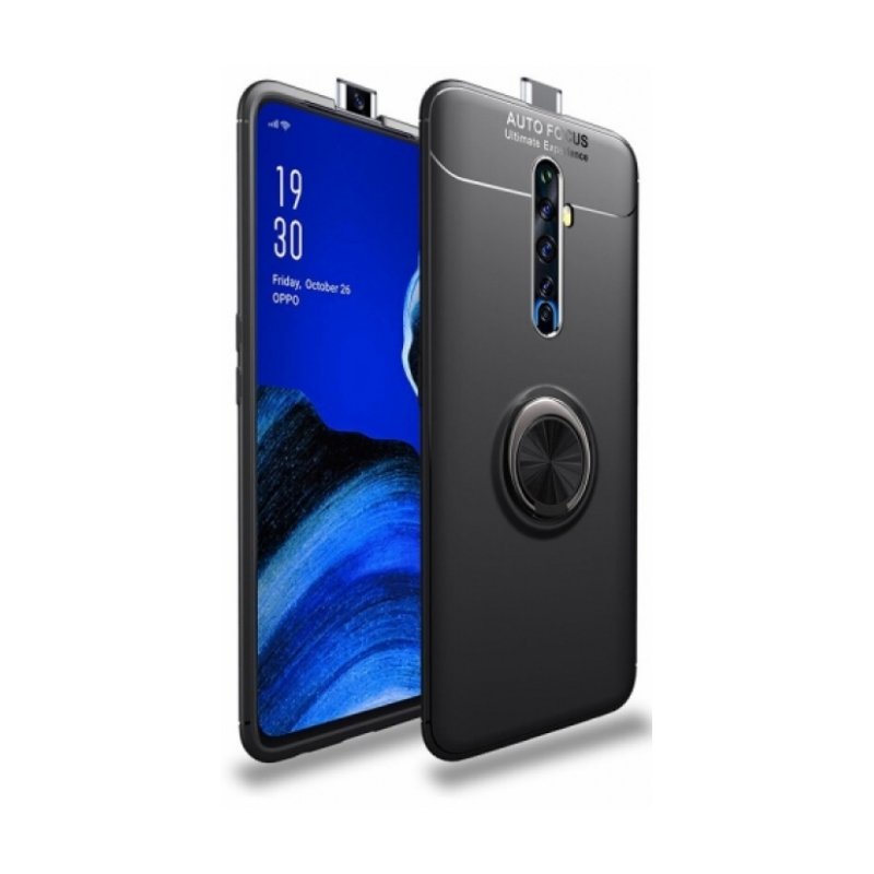 Oppo Reno 2z Kılıf Renkli Silikon Yüzüklü Standlı Auto Focus Ravel Kapak - Siyah