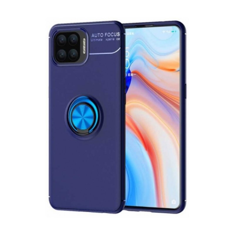 Oppo Reno 4 Lite Kılıf Renkli Silikon Yüzüklü Standlı Auto Focus Ravel Kapak - Mavi