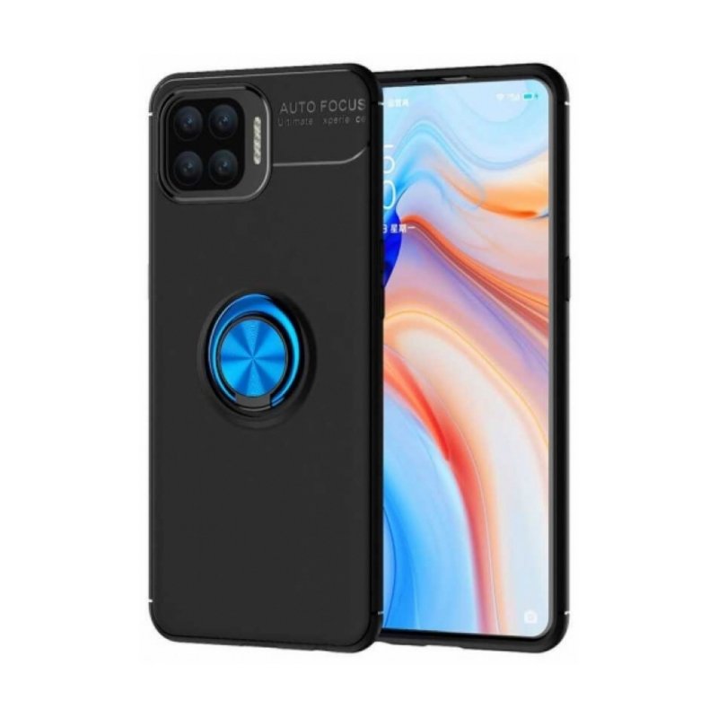 Oppo Reno 4 Lite Kılıf Renkli Silikon Yüzüklü Standlı Auto Focus Ravel Kapak - Mavi - Siyah