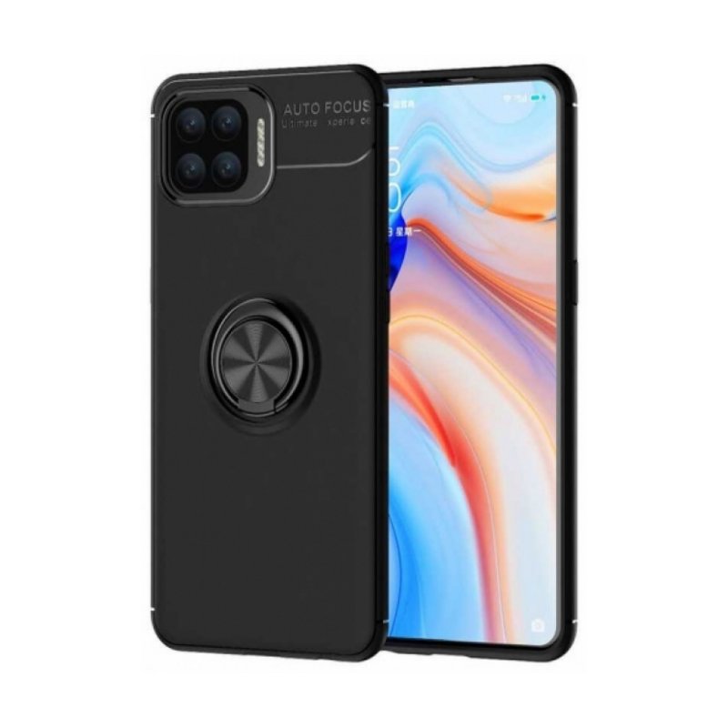 Oppo Reno 4 Lite Kılıf Renkli Silikon Yüzüklü Standlı Auto Focus Ravel Kapak - Siyah