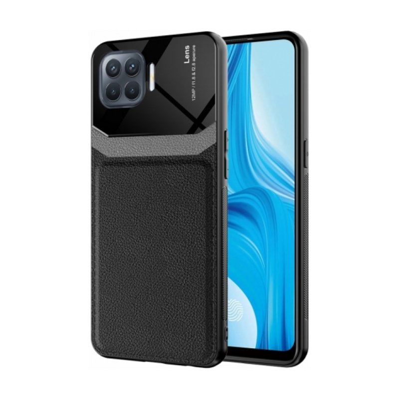 Oppo Reno 4 Lite Kılıf Deri Görünümlü Emiks Kapak - Siyah