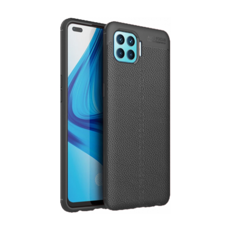 Oppo Reno 4 Lite Kılıf Deri Görünümlü Lüks Parmak İzi Bırakmaz Niss Silikon Kapak - Siyah