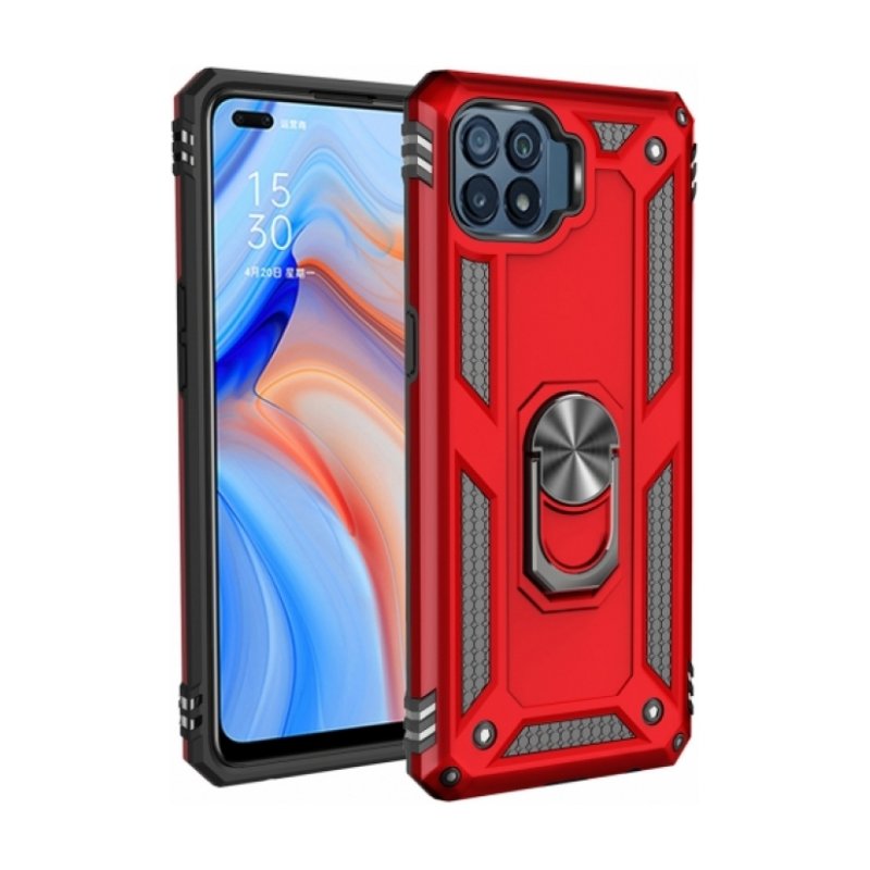 Oppo Reno 4 Lite Kılıf Silikon Zırhlı Standlı Yüzüklü Mıknatıslı Tank Kapak - Kırmızı