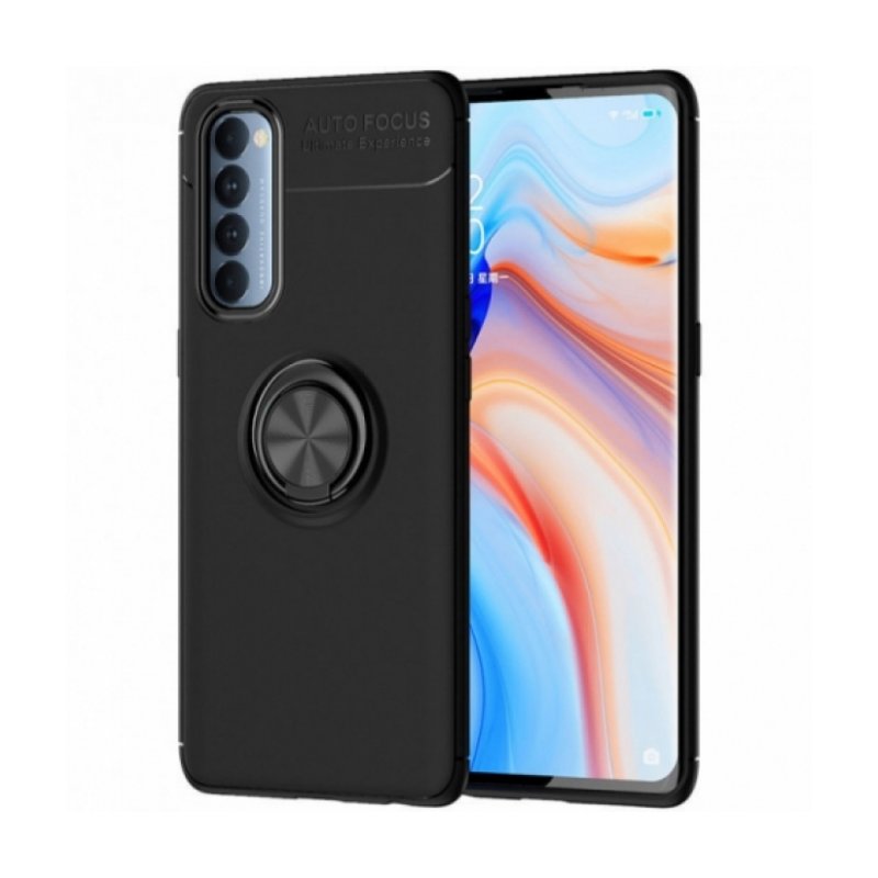 Oppo Reno 4 Pro Kılıf Renkli Silikon Yüzüklü Standlı Auto Focus Ravel Kapak - Siyah