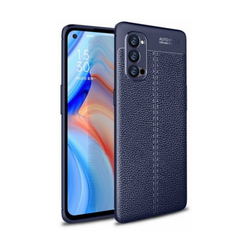 Oppo Reno 4 Pro Kılıf Deri Görünümlü Lüks Parmak İzi Bırakmaz Niss Silikon Kapak - Lacivert