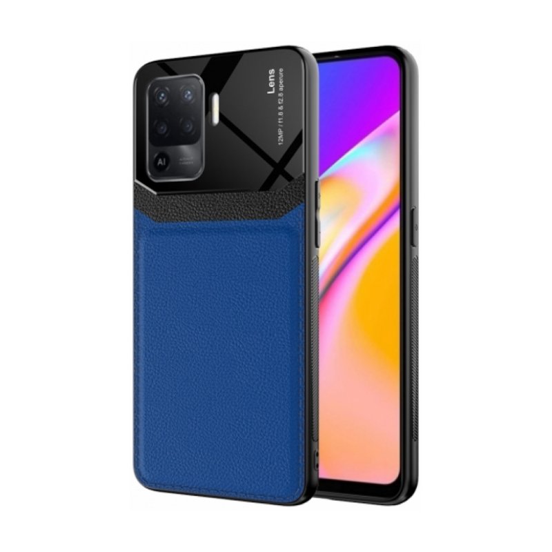 Oppo Reno 5 Lite Kılıf Deri Görünümlü Emiks Kapak - Mavi