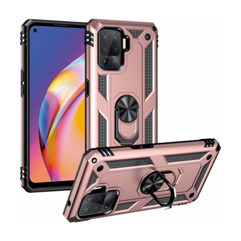 Oppo Reno 5 Lite Kılıf Silikon Zırhlı Standlı Yüzüklü Mıknatıslı Tank Kapak - Rose Gold