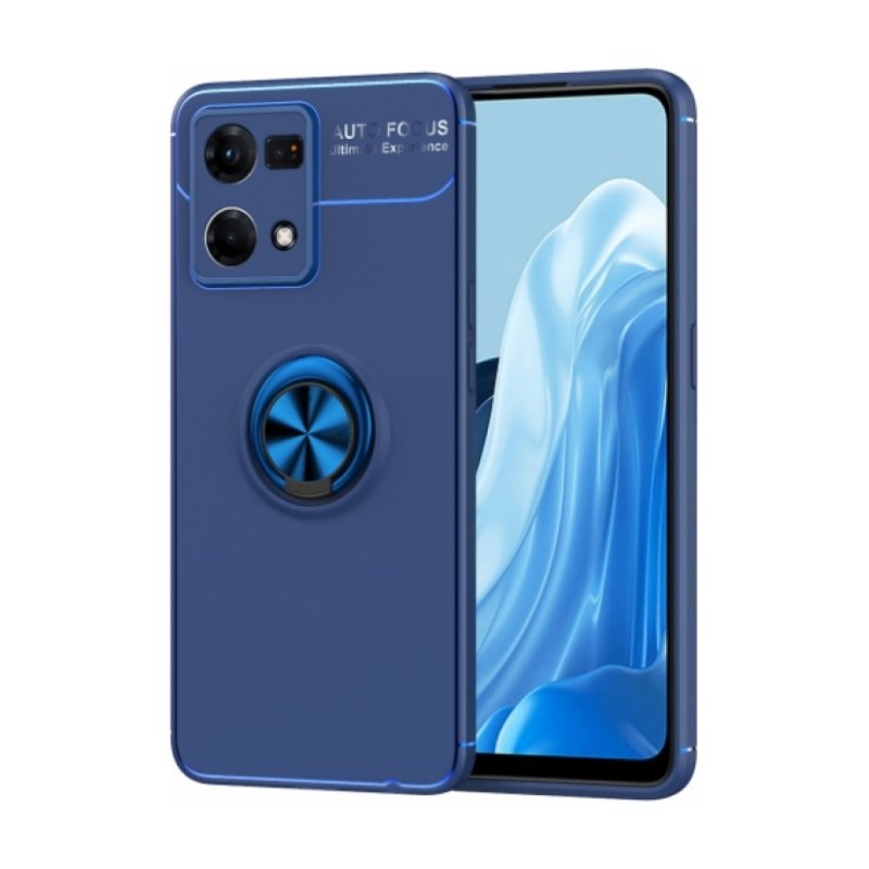 Oppo Reno 7 Kılıf Renkli Silikon Yüzüklü Standlı Auto Focus Ravel Kapak - Mavi