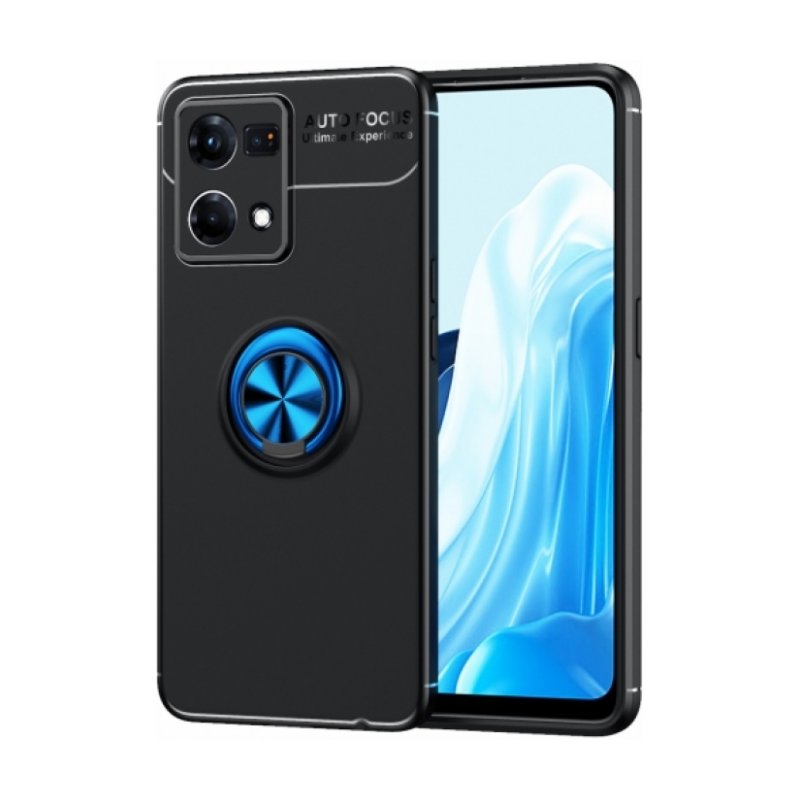 Oppo Reno 7 Kılıf Renkli Silikon Yüzüklü Standlı Auto Focus Ravel Kapak - Mavi - Siyah