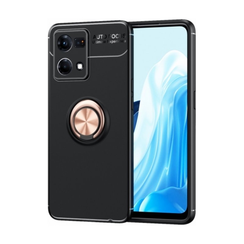 Oppo Reno 7 Kılıf Renkli Silikon Yüzüklü Standlı Auto Focus Ravel Kapak - Rose Gold