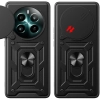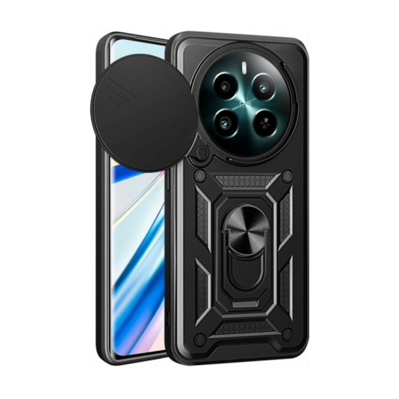 Realme 12 Plus Kılıf Zırhlı Standlı Silikon Sürgülü Kamera Korumalı Tank Kapak - Siyah