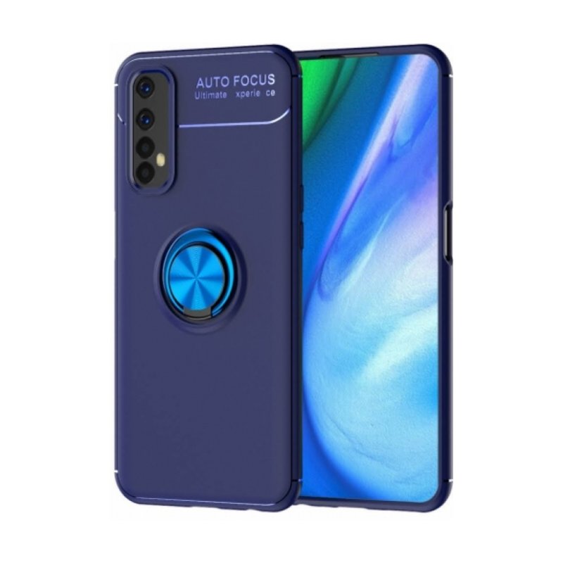 Realme 7 Kılıf Renkli Silikon Yüzüklü Standlı Auto Focus Ravel Kapak - Mavi