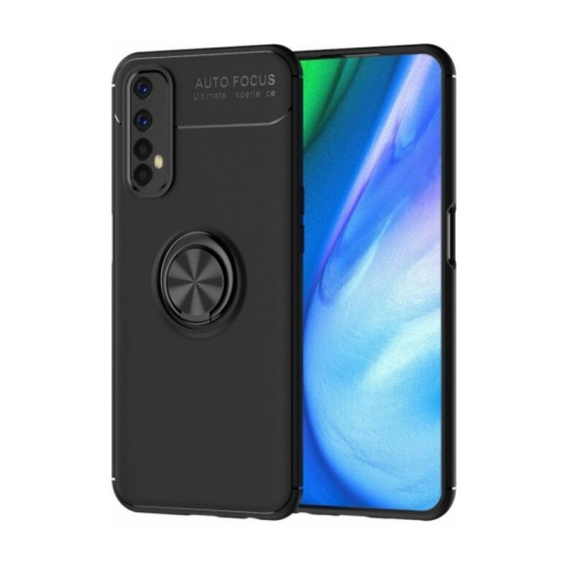 Realme 7 Kılıf Renkli Silikon Yüzüklü Standlı Auto Focus Ravel Kapak - Siyah