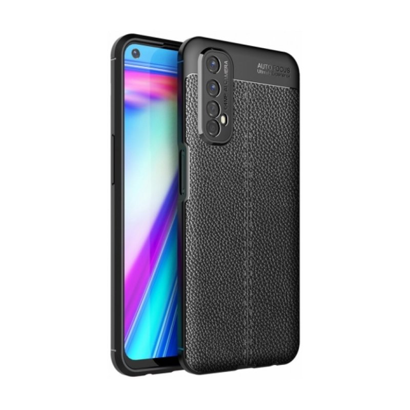 Realme 7 Kılıf Deri Görünümlü Lüks Parmak İzi Bırakmaz Niss Silikon Kapak - Siyah