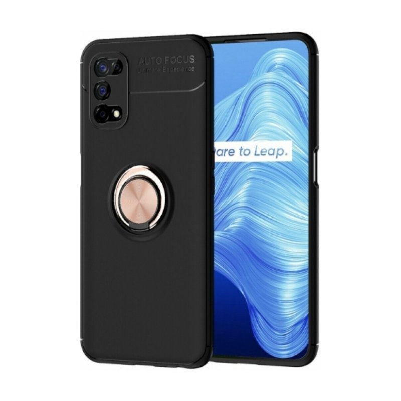 Realme 7 Pro Kılıf Renkli Silikon Yüzüklü Standlı Auto Focus Ravel Kapak - Rose Gold