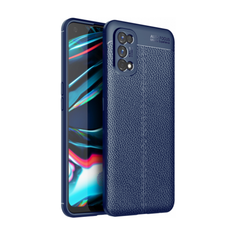 Realme 7 Pro Kılıf Deri Görünümlü Lüks Parmak İzi Bırakmaz Niss Silikon Kapak - Lacivert