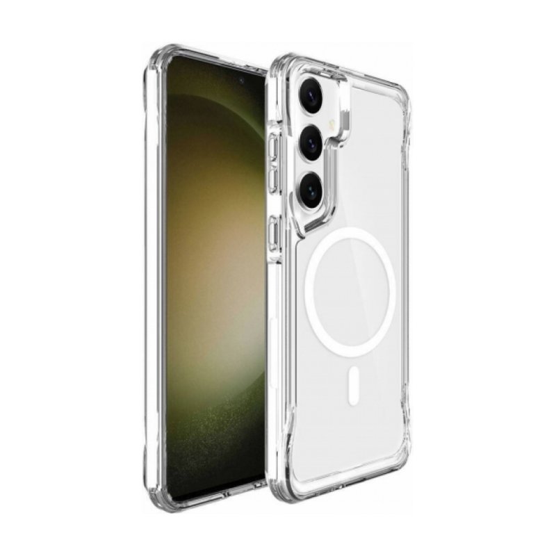 Samsung Galaxy S24 Kılıf MagSafe Özellikli TPU Kenarları Esnek T-Max Kapak - Şeffaf