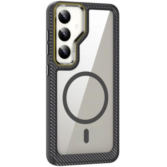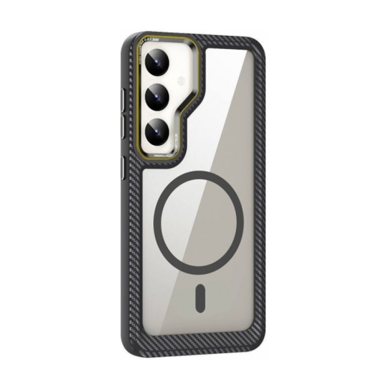 Samsung Galaxy S24 Kılıf Magsafe Şarj Özellikli Sert PC Karbon Fiber Kenar Tasarımlı Libero Kapak - Siyah