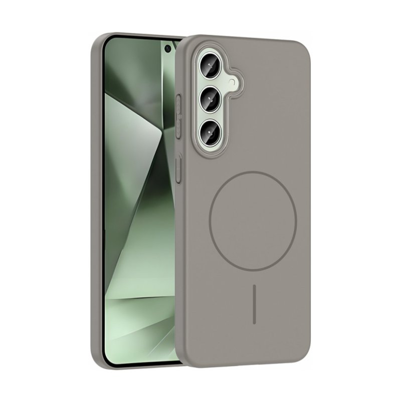 Samsung Galaxy S24 Plus ile Uyumlu Kılıf Magsafe Şarj Özellikli Ruby Silikon Kapak - Gri